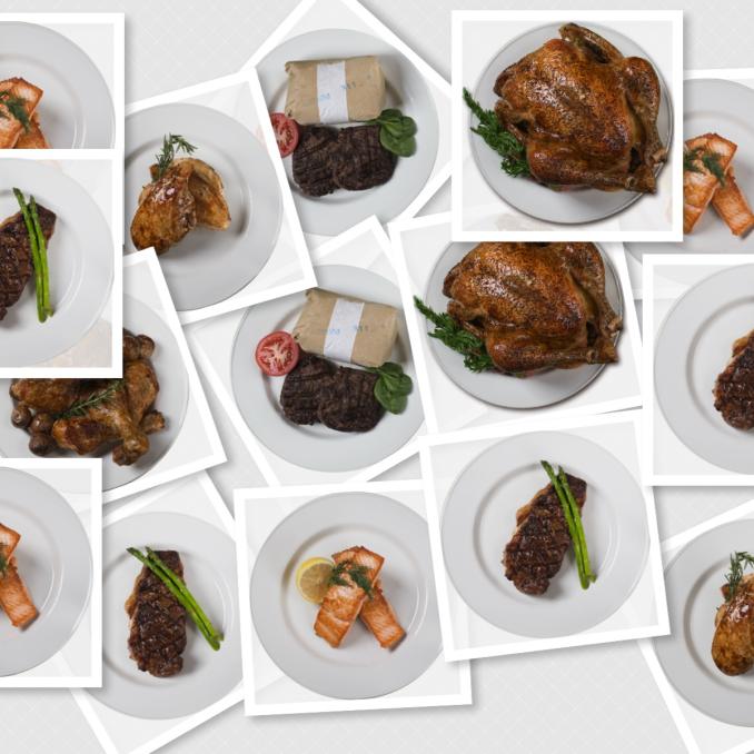 Here is what is in the Combo Pack (less than $5.00 per individual serving) 2 whole Chickens (approximately 7 pounds each) 2 packages Boneless Breast (approximately 1.6 - 2.3 pounds each) 1 package Drums and Thighs (3 of each) 4 packages Salmon Solo's (2 per pack) 4 Beef Striploin Steaks (approximately 3/4 pounds each) 4 packages of Ground Beef (1.5 pounds each) 1 Kilo of fresh raw honey & 1 dozen farm fresh eggs.